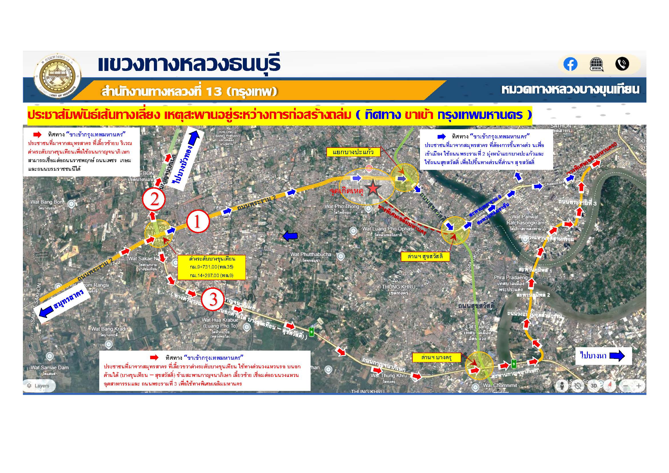 ประชาสัมพันธ์เส้นทางเลี่ยง เหตุสะพานอยู่ระหว่างการก่อสร้างถล่ม (ทิศทาง เขาเข้า,ขาออก กรุงเทพมหานคร)