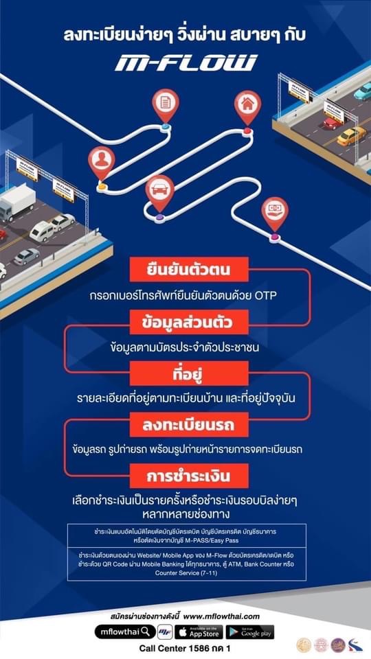 อธิบดีกรมทางหลวงเน้นย้ำว่า “ระบบ M-Flow คือ ระบบที่ใช้เทคโนโลยี AI ที่ทันสมัยที่สุดเป็นครั้งแรกในประเทศไทย ผู้ใช้ช่องทาง M-Flow นี้ เมื่อผ่านบริเวณด่านเก็บเงิน ไม่ต้องชะลอความเร็ว วิ่งผ่านด่านฯ ได้เลย โดยจะไม่มีไม้กั้นที่ช่องเก็บเงิน และเมื่อใช้งานผ่านด่านฯ แล้ว ค่อยจ่ายเงินภายหลัง ตามเงื่อนไขที่ลงทะเบียนสมัครสมาชิกไว้ สำหรับผู้ที่สามารถเข้ามาใช้ระบบ M-Flow ในช่องทางที่กําหนด ต้องเป็นผู้ที่ลงทะเบียนสมัครเป็นสมาชิก M-Flow เท่านั้น รถป้ายแดง รถป้ายเลอะเลือนไม่ชัดเจน หรือไม่ติดแผ่นป้ายทะเบียน ห้ามเข้ามาใช้ระบบ M-Flow จึงขอเชิญชวนให้รีบสมัครเป็นสมาชิกตามช่องทางต่างๆ ข้างต้นให้เรียบร้อยก่อน เมื่อสมัครเสร็จแล้ว ก็สามารถเข้าใช้บริการได้ทันทีในทุกด่านฯ โดยใช้ช่องทางขวาสุด สังเกตป้ายสัญลักษณ์ M-Flow ก่อนถึงด่านฯ และที่พื้นถนน ส่วนรถยนต์ที่ยังไม่ได้เป็นสมัครสมาชิก หากขับผ่านช่อง M-Flow เนื่องจากเกิดความสับสนช่องทางวิ่งหรือไม่ทันสังเกตป้ายเตือนต่างๆ ขอให้ท่านรีบดำเนินการชําระเงินย้อนหลังภายใน 2 วัน โดยสามารถตรวจสอบยอดค้างชำระและชำระเงินได้ 3 ช่องทาง ได้แก่ เวบไซต์ mflowthai.com, Mobile Application: MFlowThai และ Line OA: @mflowthai เพื่อแสดงว่าท่านไม่มีเจตนาหลีกเลี่ยงไม่ชำระค่าผ่านทาง หากไม่ชำระตามเวลาที่กำหนดจะถูกดำเนินคดีตามกฎหมาย ทั้งนี้ สําหรับรถยนต์ป้ายแดง หรือป้ายทะเบียนไม่ชัดเจน ไม่สามารถใช้บริการ M-Flow ได้ แต่ยังคงใช้ช่องชําระเงินสด และช่อง M-Pass Easy Pass ได้ หากสงสัยหรือต้องการสอบถามข้อมูลเพิ่มเติม โทรติดต่อได้ที่ Call Center โทร 1586 กด 1