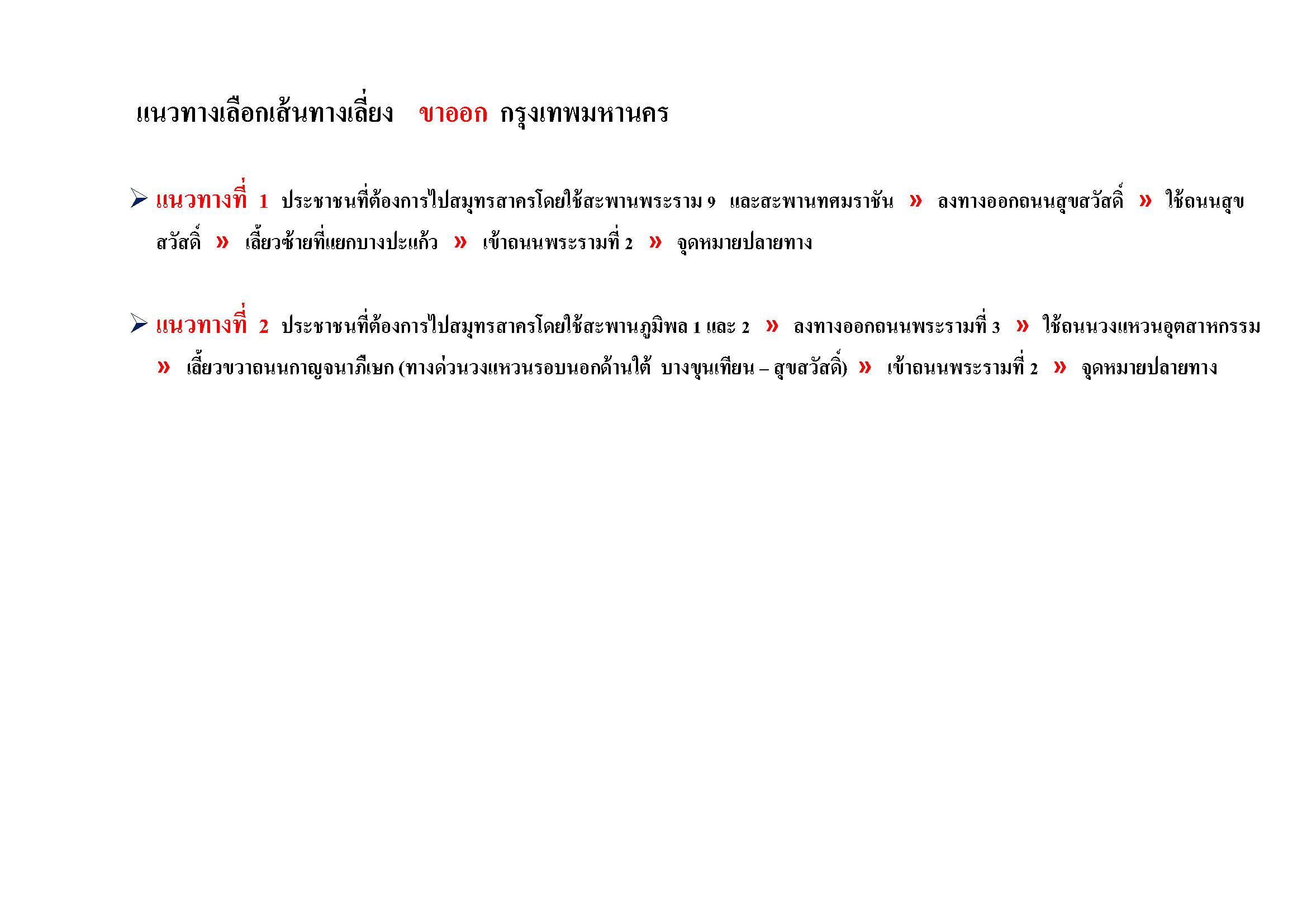 แนวทางเลือกเส้นทางเลี่ยง “ขาออก กรุงเทพมหานคร”
