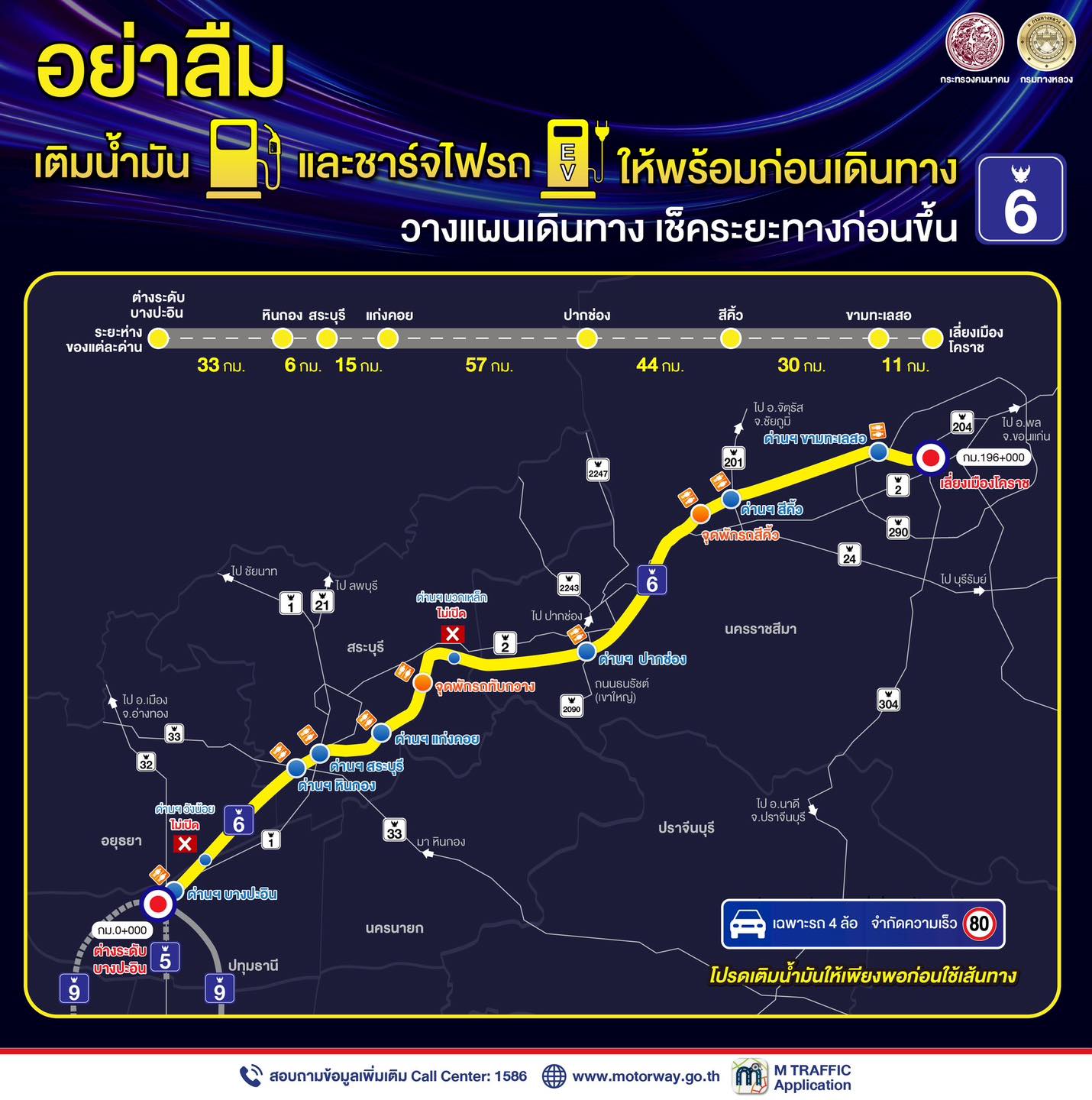 วางแผนเดินทาง เช็คระยะทางก่อนขึ้น M6